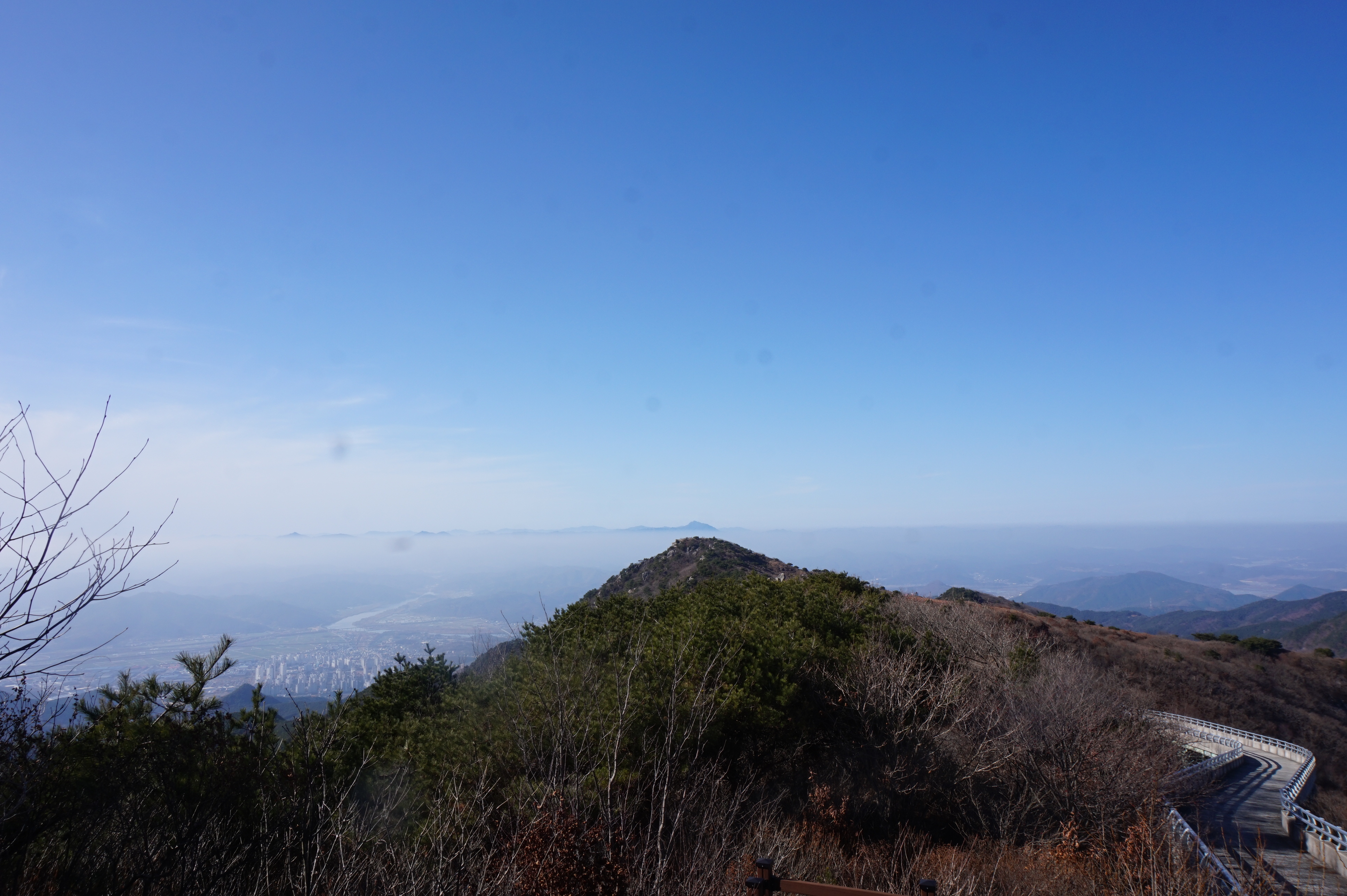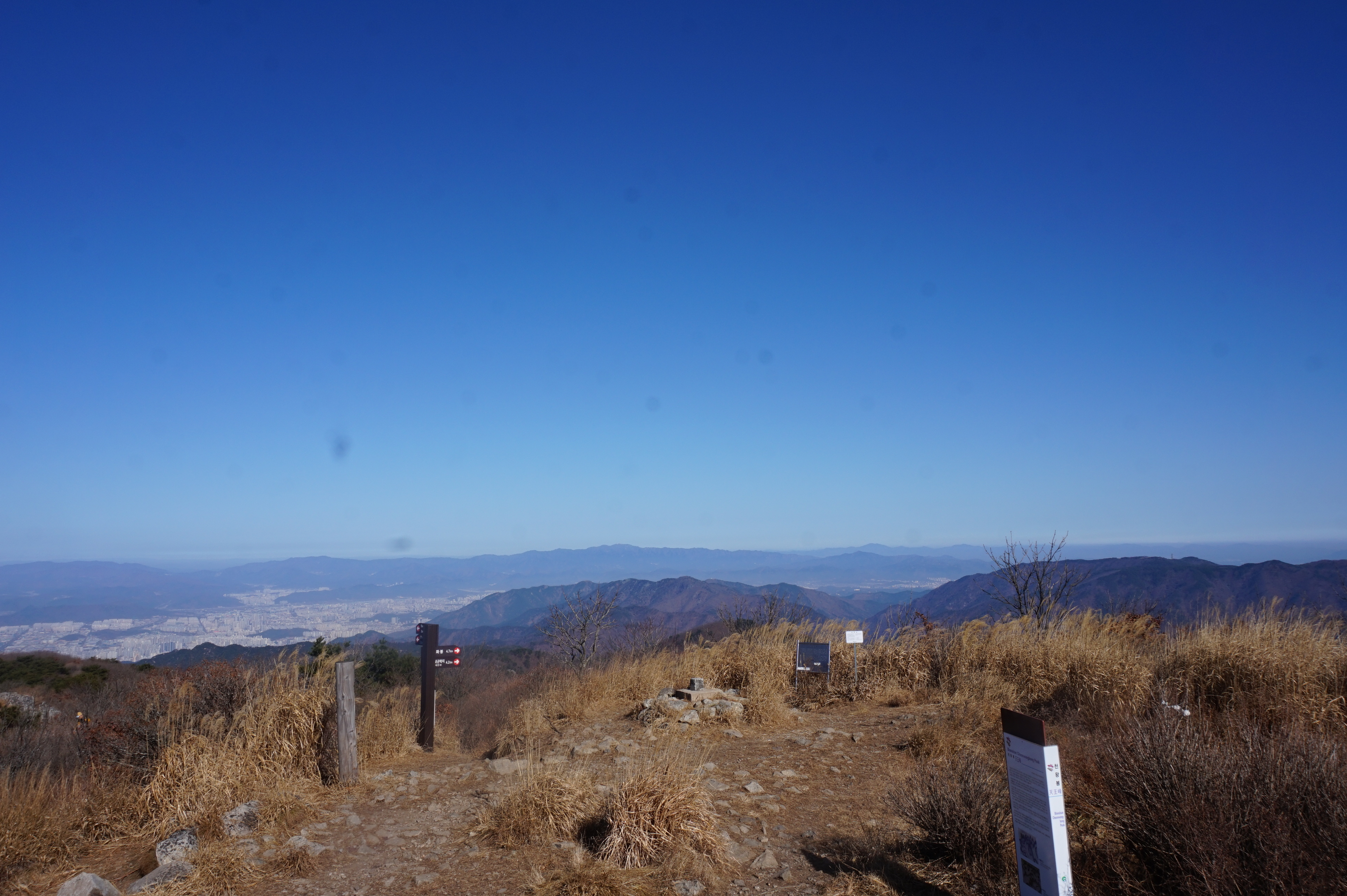아침기온 0/15도 미세먼지가 심함 천고지 높이에서는 조망이 좋아 따뜻해서 산행하기 좋은 날